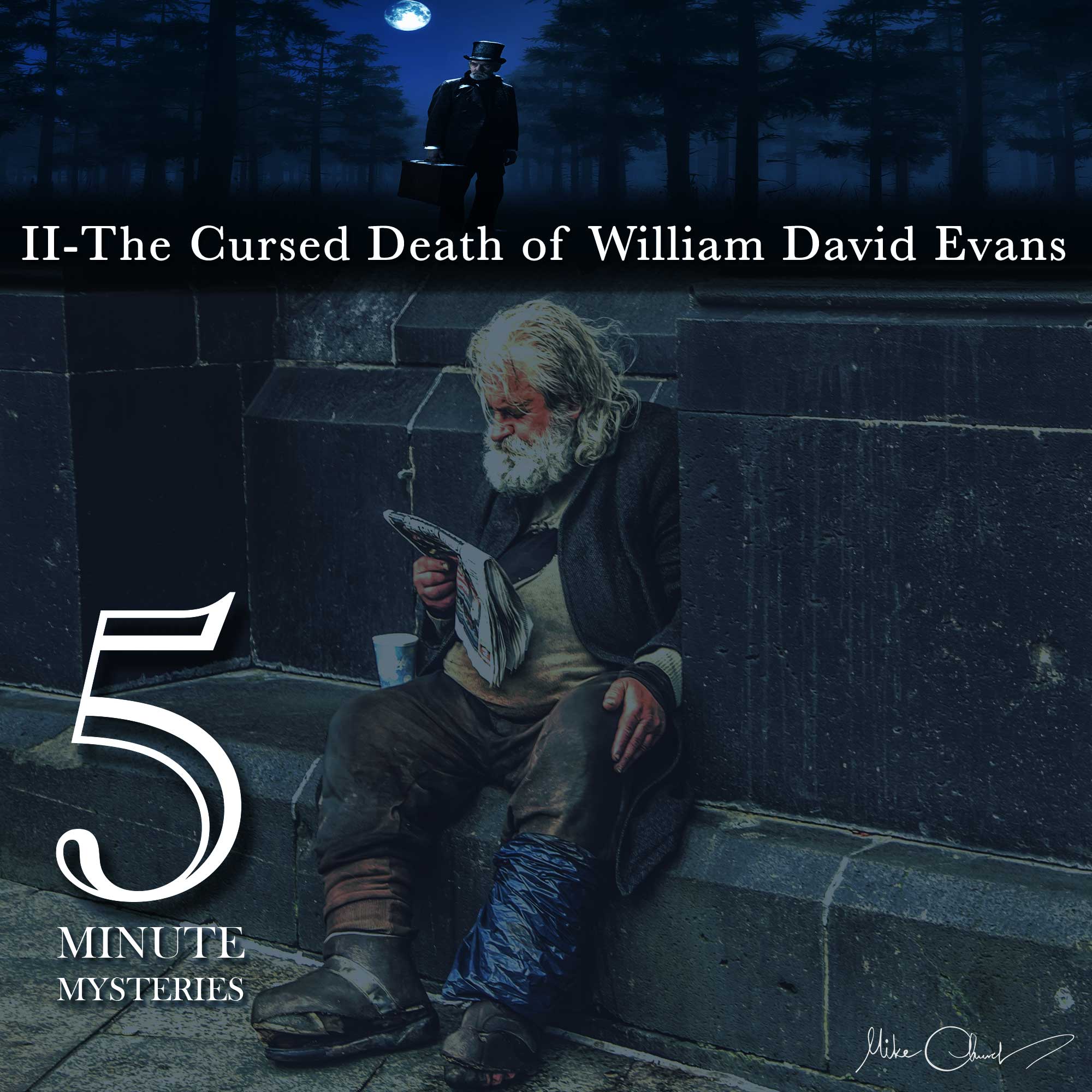 In 5 Minute Mysteries-Ep II, A chance encounter on a dreary sea front. A hated man meets the person he ruined years before, huddled under a blanket, homeless and desperate. The homeless man swears to strike down his enemy before the next day dawns…and William David Evans is found dead. How?
