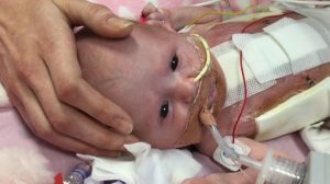 Winchester, VA – Ectopia cordis is a condition in which a baby’s heart grows outside the body while in utero. Babies with this condition have a less than 10% chance of survival. The Guardian reports that one baby, Vanellope Hope Wilkins is defying those odds, and is the first baby in the U.K. to do so. Born by cesarean section on November 22, at Glenfield Hospital in Leicester, Vanellope overcame her first hurdle when she was born crying, for the ability to breathe was crucial with her condition. Her first of three surgeries was performed within an hour of her birth. Now three weeks old, she has had all three operations to move her heart back into her chest. For a baby whose parents were told that termination was the only option, she is doing remarkably well. What a tremendous blessing!