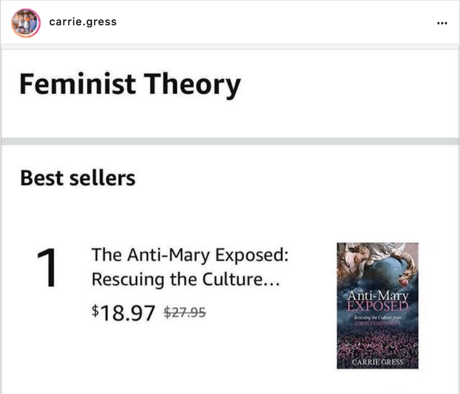 After appearing on the Mike Church Show to discuss her she was being discriminated against by big tech, Dr. Carrie Gress’s book, The Anti-Mary is now the number one best selling book at Amazon.com. You can still get your hands on the book by shopping at the Founders Tradin Post here