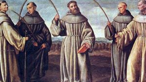 Winchester, VA – Born into the noble family of Leopardi in Umbria, Saint Berard lived in the early 13th century and was one of the earliest Franciscian friars, being received into the order by St. Francis himself in 1213. He was fluent in Arabic and had the holy gift of preaching. With four other Franciscans, he was chosen to go to Morocco to evangelize the Muslims. The only one of the five who could speak Arabic was Berard and his bold preaching both for the Gospel of Christ and against the religion of Islam not only made him and his fellow Franciscans appear to be insane, but it also got them thrown into prison. Saint Berard and his companions enraged the Moorish king such that he beheaded them personally with his scimitar. Sts. Berard and his companions, were the first Franciscan martyrs. Saints Berard and companions, pray for us!