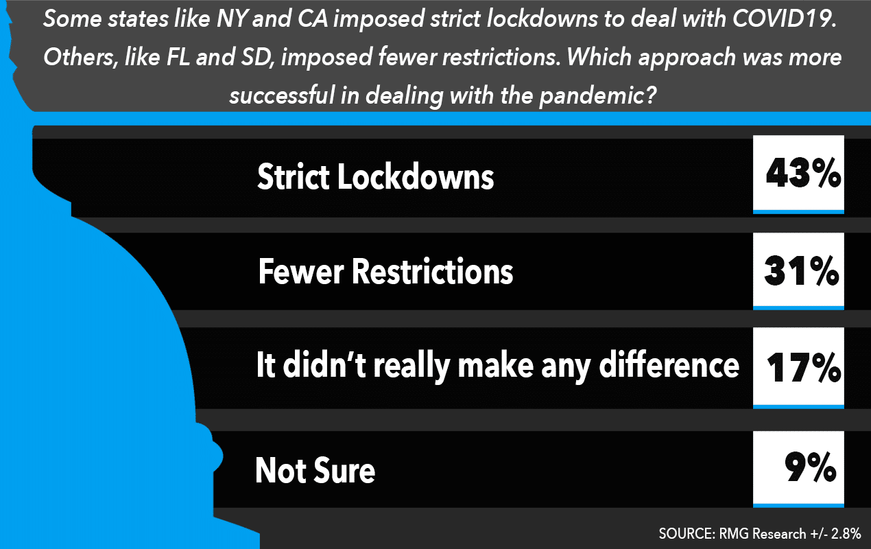 Noting that numerous states implemented varying levels of lockdowns – with some such as California locking down hard and others like Florida locking down minimally or not at all – voters were asked “which approach was more successful in dealing with the pandemic?”