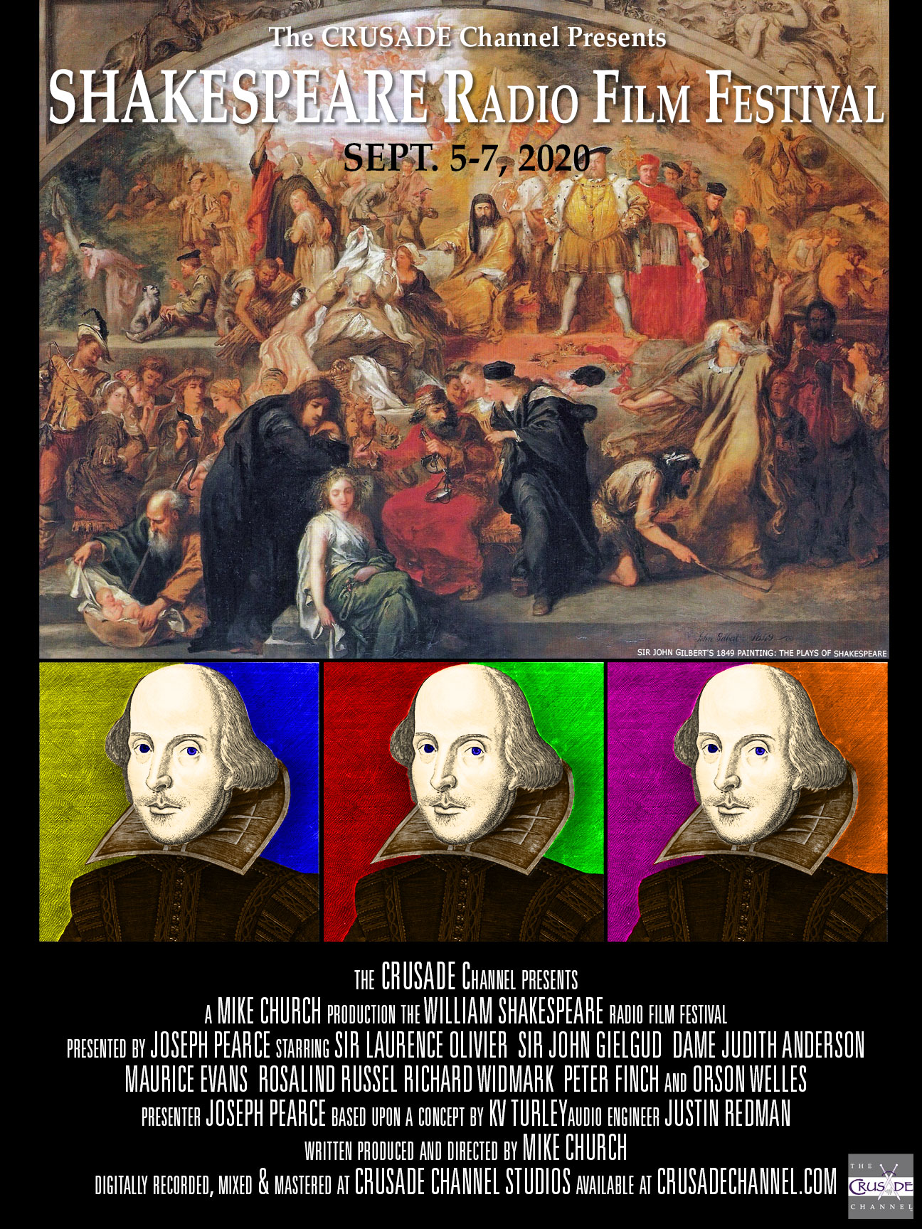 Mandeville, LA – The CRUSADE Channel Presents: The William Shakespeare Radio Film Festival a 2 day, radio event featuring 12, Golden Age of Radio-era radio productions from Shakespeare’s plays and starring incredible, all star casts!