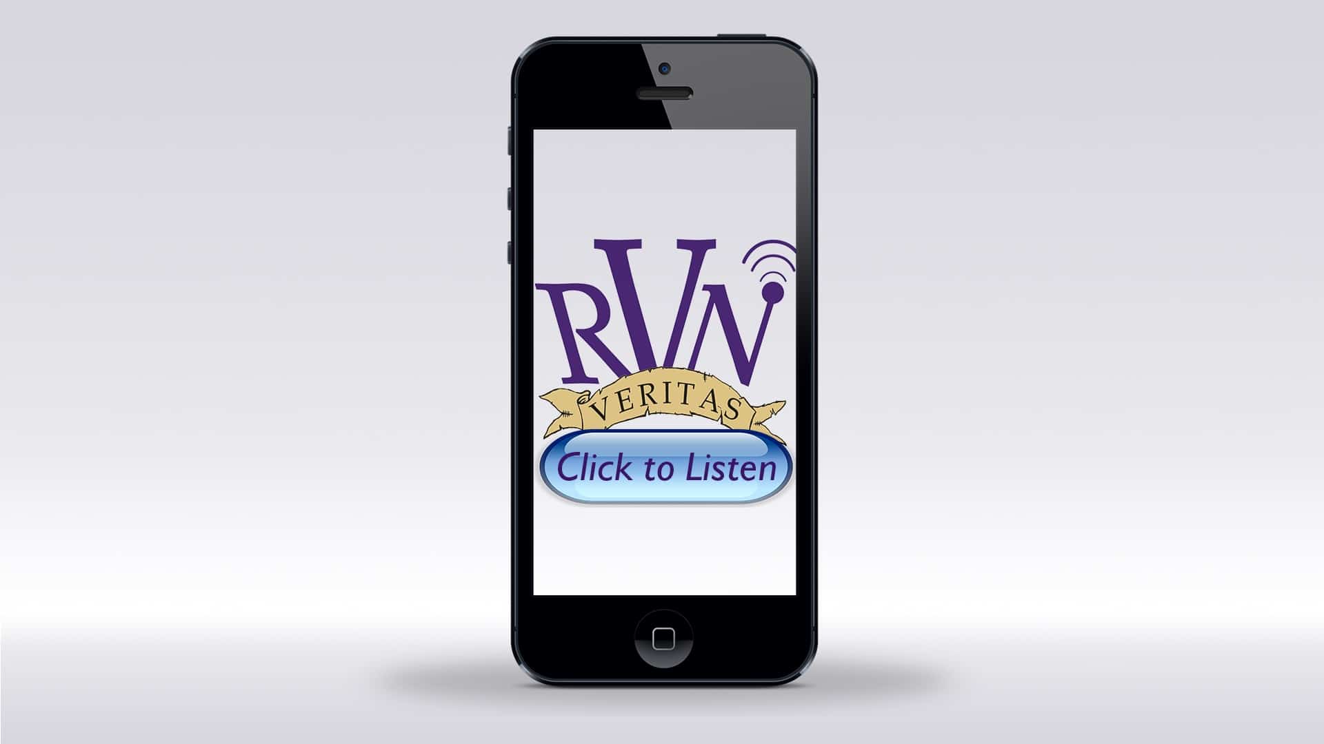 Advertisement for listening to the new VRN on iPhones via the new VRN App